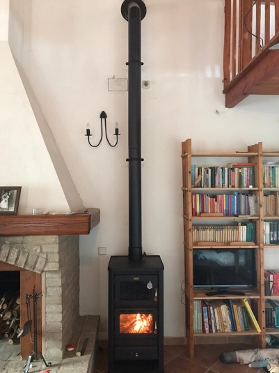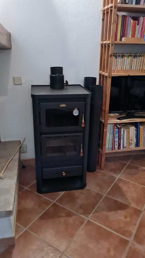 En ja, het is ook hier herfst en in een zomerhuis zonder verwarming dus bitterkoud. Ik schreef al eerder dat we een kachel moesten regelen en moesten laten installeren, want alleen die open haard verwarmt lang niet genoeg om er behaaglijk bij te zitten. Het duurde slechts een week of twee, maar hé, dan heb je ook wat.