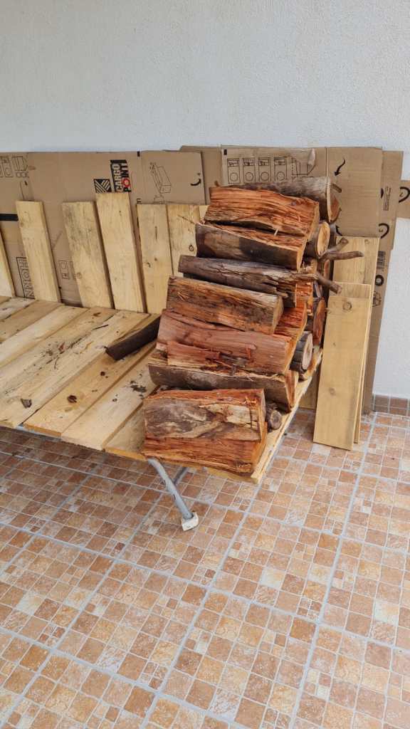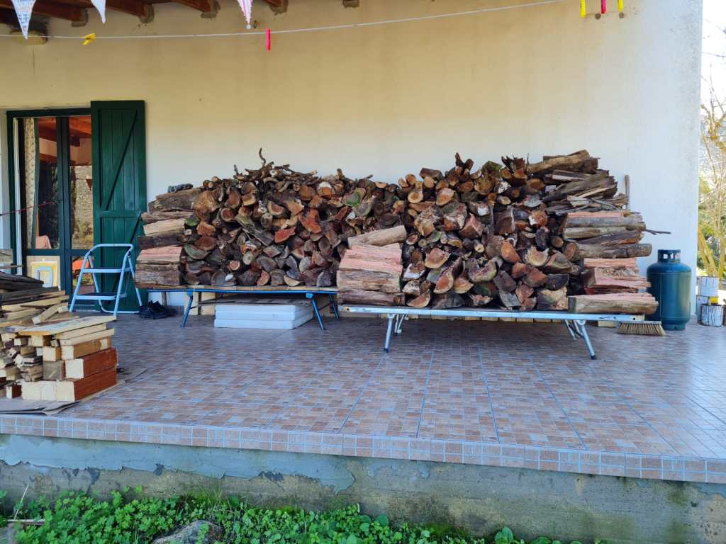 Oh ik vergat nog. Gisteren met geknepen billen gewacht op twee houtleveringen (het was al donker toen ze eindelijk kwamen!!), want zonder hout, zit je hier koud!!