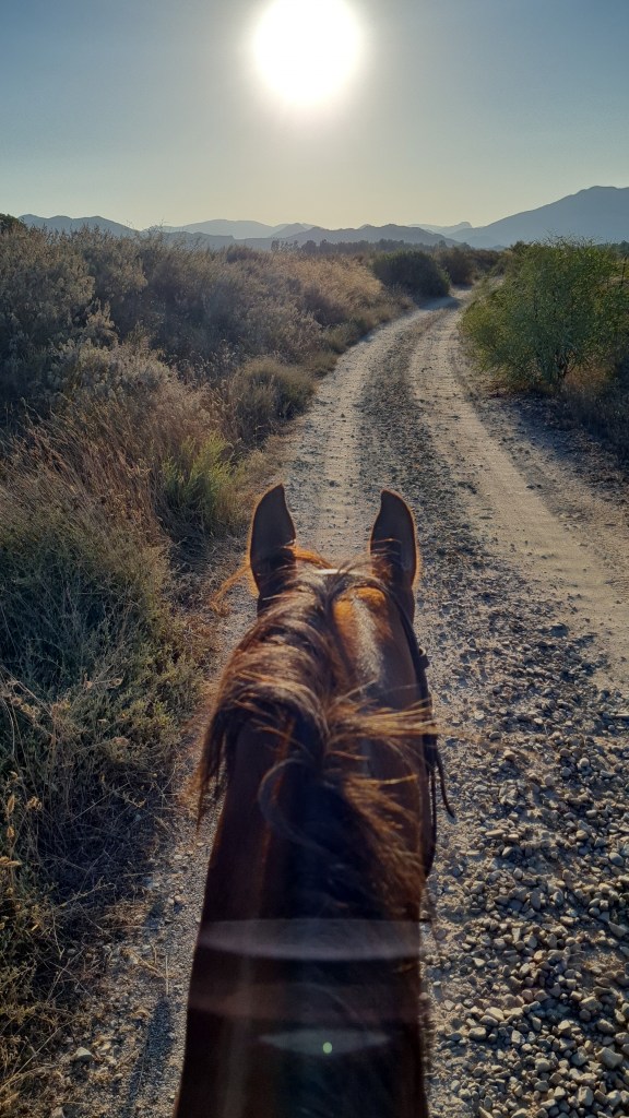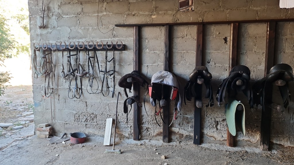 Het heeft wel tamelijk wat voorbereiding nodig gehad. Eerst even tig cactussen en behoorlijk wat puin moeten (laten!) verwijderen van het terrein dat voor het huis ligt voor het maken van de paddock en rijbaan. Daarna de omheining en schuilstal opgebouwd. Net als alvast een ‘bescheiden’ zadelkamer. Allemaal met behoorlijke hulp van manlief, mijn topzwagert en wat lokale klusjesmannen. En het resultaat mag er zijn !!