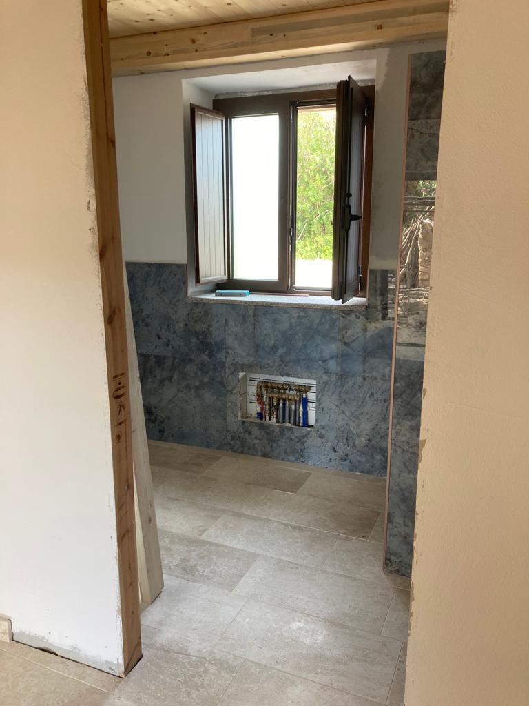 Eerst een cementlaagje …Marmeren vloer beneden …Vloer bovenEerste aanzet tot een keuken …