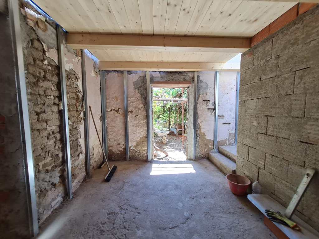 Nou ja … huis … het is eerder een bouwval, maar het heeft één groot voordeel: zolang je het in originele staat terugbrengt, hoef je geen bouwvergunning aan te vragen! Dat betekent dat we snel kunnen schakelen als we eenmaal de grond definitief hebben gekocht.