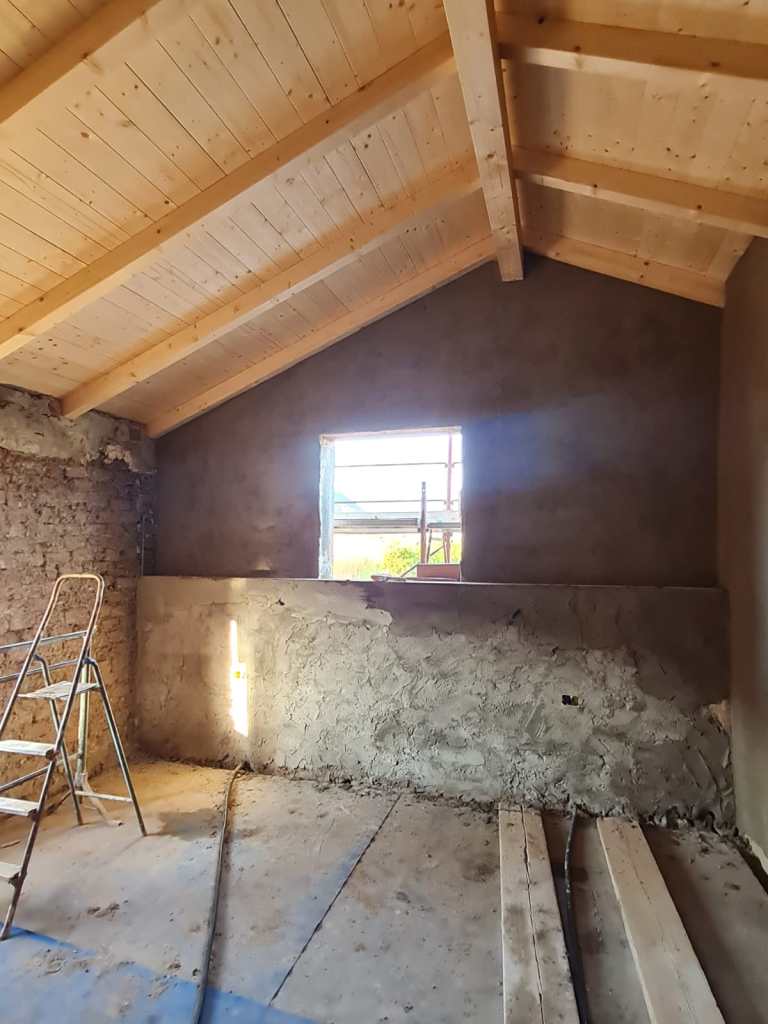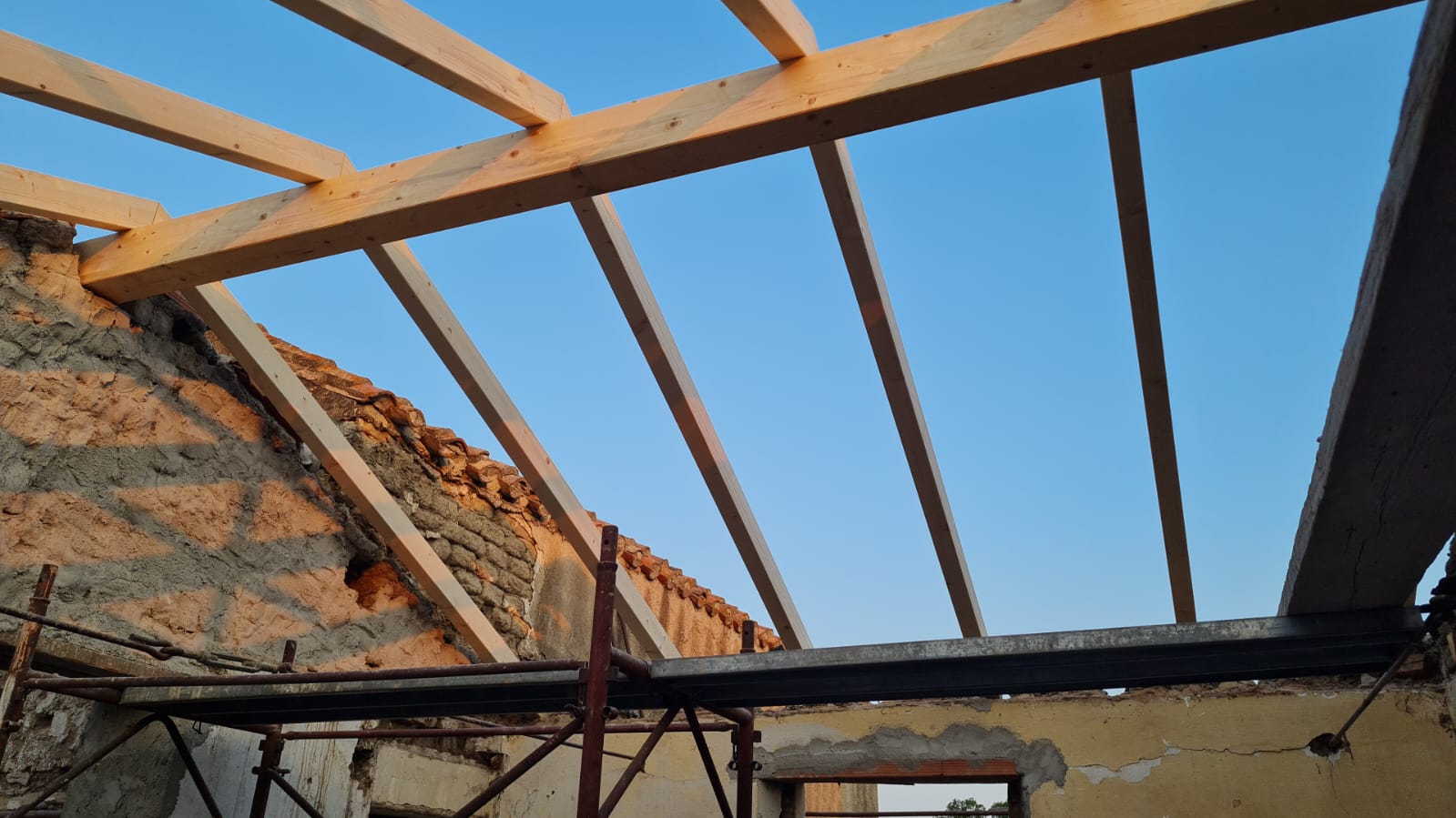 Op 10 juli gestart met de werkzaamheden voor de rennovatie (muren en draagbalken zijn gestut, waterleidingen aangelegd, vloeren voorzien van nieuw beton en al het rotte hout is eruit gesloopt en weer nieuwe geplaatst!) en vanaf volgende week worden de appartamenten voorzien van aparte kamers en wordt het nieuwe dak er stuk voor stuk opgezet, de vergunning hiervoor is eindelijk rond … 💪