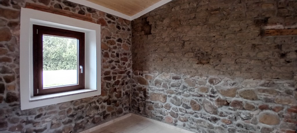 In de tussentijd zijn we druk bezig geweest om de oude muren een nieuw jasje te geven. Althans, ik heb de oude voegen eruit gebikt maar vooral Heile heeft zich stuk gewerkt om de nieuwe voegen netjes ertussen te krijgen. Maar het resultaat mag er wezen!