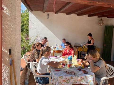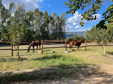 Eindelijk zijn we op onze bestemming. Snel de paardjes uitgeladen en dan eerst lunchen. Met dank aan Rose en Mark en de meiden, onze lieve vrienden!