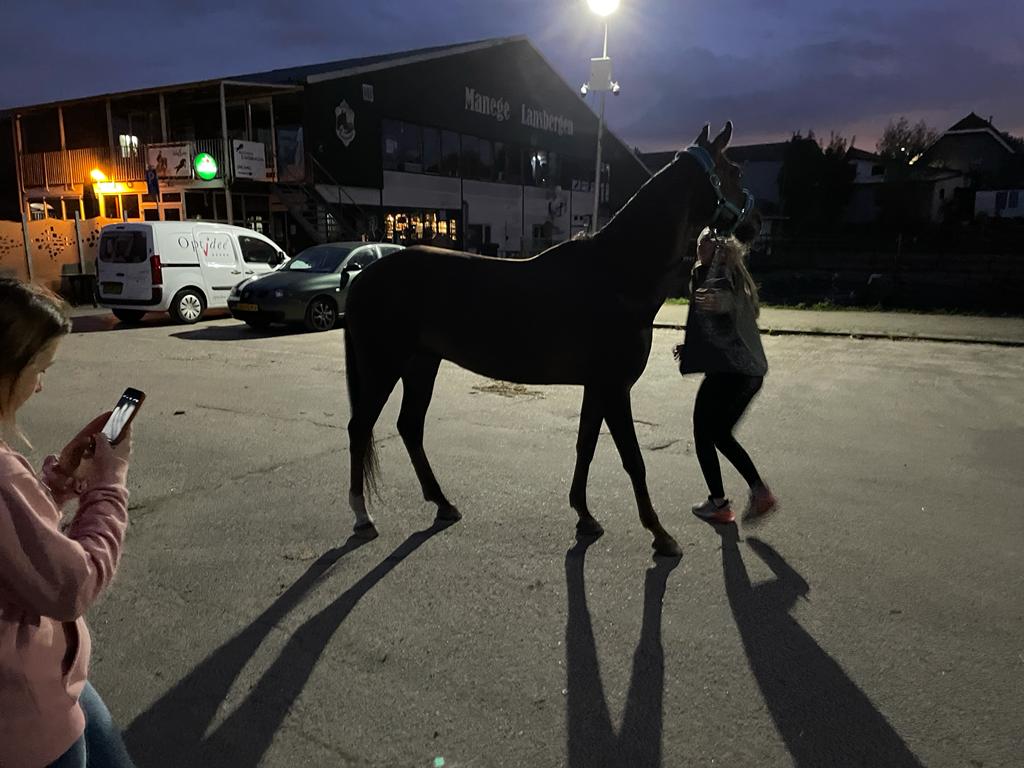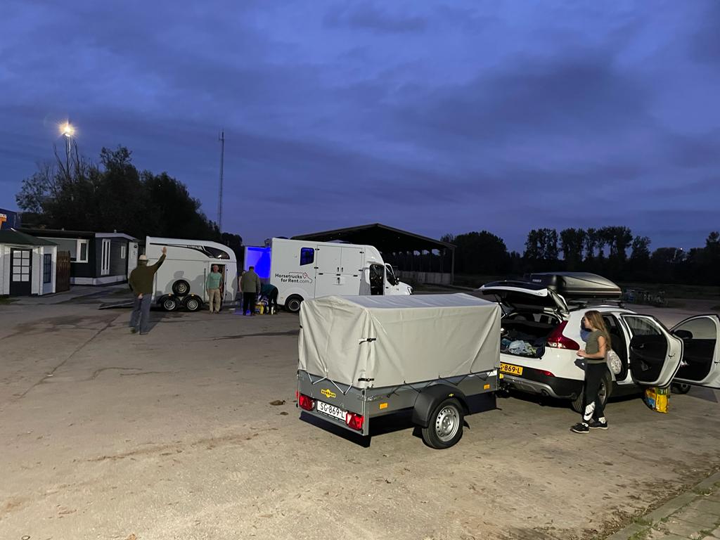 Het was een beetje onwennig voor hen in deze nieuwe omgeving, maar wat waren ze blij om de benen te kunnen strekken! All Star en Ardra hebben zich heel goed gehouden deze reis. Lees er meer over in het aparte paardenbericht.
